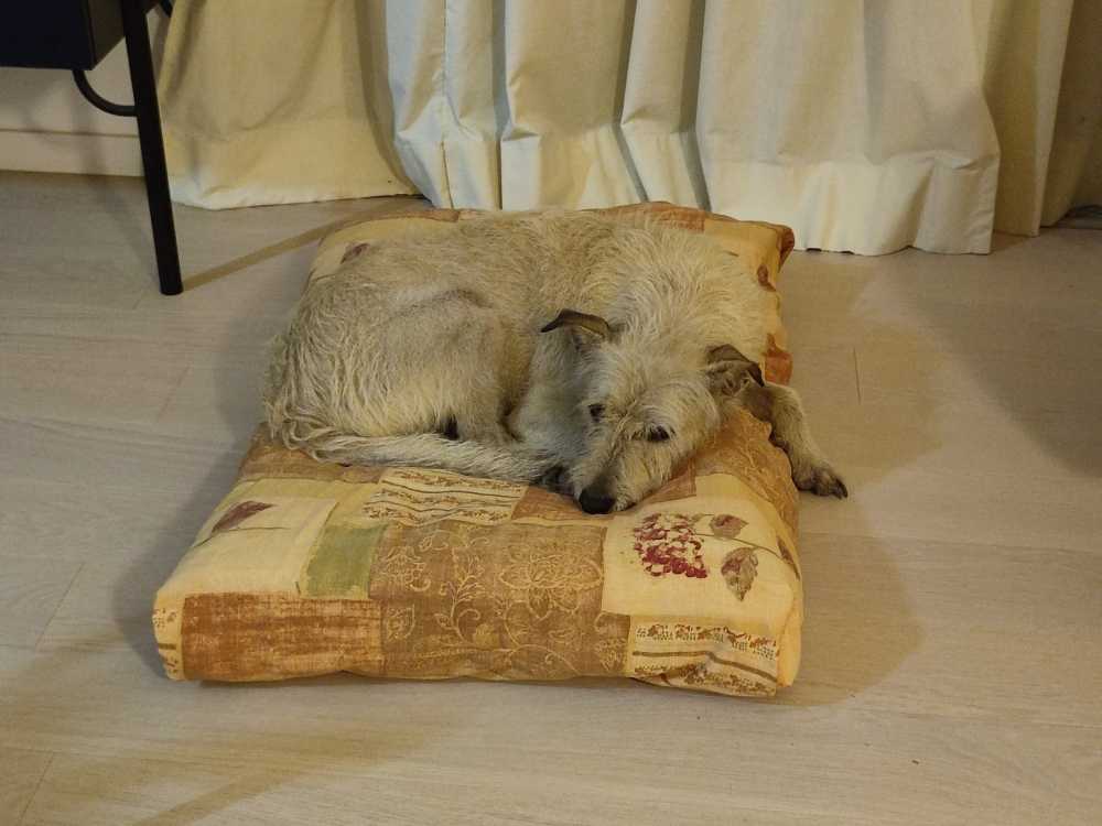 Faço camas para cães com uma cobertura amovível e lavável feita de tecido de cortina reciclado ou outro tecido resistente. O enchimento é feito de colchas recicladas. Tudo é bem lavado antes de ser utilizado.